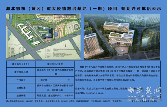 湖北省鄂東(黃岡)重大疫情救治基地一期項目規(guī)劃許可批后公示圖。(通訊員供圖)