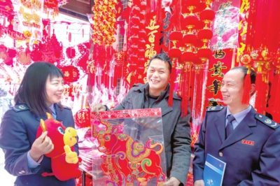 春節(jié)前夕,國(guó)家稅務(wù)總局孝南區(qū)稅務(wù)局開展“春風(fēng)行動(dòng)進(jìn)萬家”送政策、送服務(wù)、送溫暖活動(dòng),為市場(chǎng)主體穩(wěn)定經(jīng)營(yíng)、企業(yè)留工用工做好稅務(wù)保障。圖為該局書院街稅務(wù)分局稅務(wù)人員在當(dāng)?shù)亍鞍死锝帧迸l(fā)市場(chǎng)逐一走訪。(通訊員楊進(jìn)平 攝)
