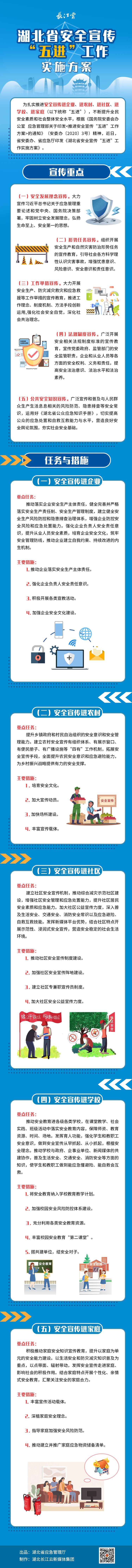 為扎實(shí)推進(jìn)安全宣傳進(jìn)企業(yè)、進(jìn)農(nóng)村、進(jìn)社區(qū)、進(jìn)學(xué)校、進(jìn)家庭(以下統(tǒng)稱(chēng)“五進(jìn)”),不斷提升全民安全素質(zhì)和社會(huì)整體安全水平,近日,省安全生產(chǎn)委員會(huì)辦公室、省應(yīng)急管理廳聯(lián)合印發(fā)《湖北省安全宣傳“五進(jìn)”工作實(shí)施方案》,對(duì)我省安全宣傳“五進(jìn)”工作作出詳細(xì)部署。