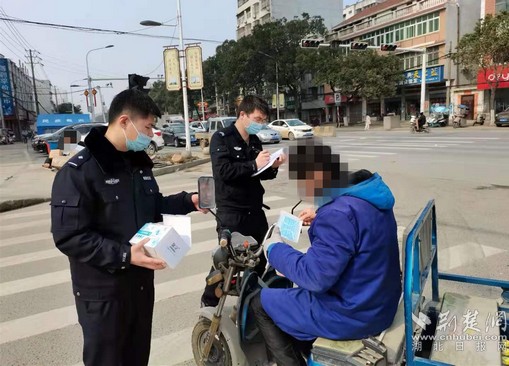 “您好,請佩戴好口罩……”春節(jié)期間,葛店開發(fā)區(qū)公安分局民警在街面、菜場、路口都設(shè)置服務崗,引導居民佩戴口罩,同時向未佩戴口罩的居民免費發(fā)放口罩。