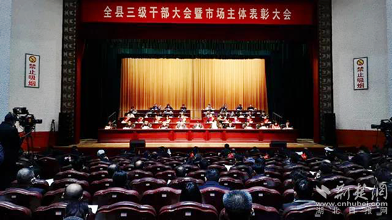 浠水縣三級干部暨市場主體表彰大會現(xiàn)場。通訊員供圖