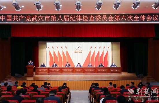武穴市紀(jì)委八屆六次全會(huì),5名市直單位黨組(黨委)書(shū)記上臺(tái)述責(zé)述廉。通訊員供圖