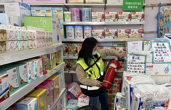 “消防格格”檢查母嬰店消防設(shè)備情況。通訊員供圖
