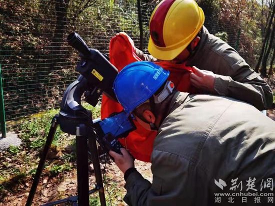 國(guó)網(wǎng)黃石供電公司用“激光炮”消除線路安全隱患。(通訊員供圖)