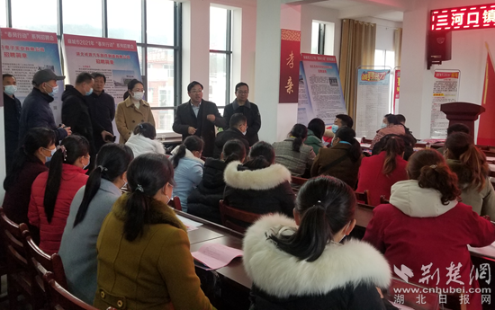 在河口鎮(zhèn)舒家畈村黨員群眾服務中心大樓內,300多人到這里參加“春風送真情 就業(yè)暖民心”開發(fā)區(qū)專場招聘。雖然風雨交加,但19家企業(yè)的人事專員依然如期而至,前來咨詢和找工作的群眾熱情很高。
