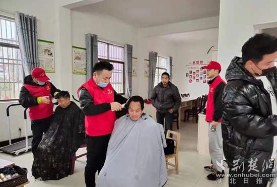 志愿者為貧困群眾和留守兒童義務(wù)理發(fā)。(通訊員供圖)