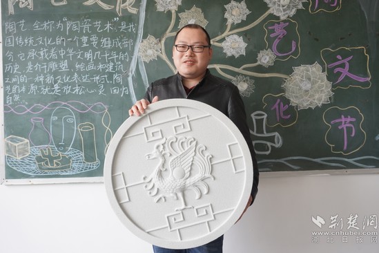 荊楚網(wǎng)(湖北日報網(wǎng))訊(記者熊子璇)3月9日,記者走進(jìn)湖北理工學(xué)院,對該校教師陸成龍創(chuàng)業(yè)事跡進(jìn)行了探訪。步入該院材料科學(xué)與工程學(xué)院的大樓,最先入眼的是一面淡黃色并雕刻著萬里長城的藝術(shù)墻,這面用新型綠色建筑材料設(shè)計而成的墻面讓陸成龍找到創(chuàng)業(yè)方向的靈感,也是他專業(yè)拓展的起步。