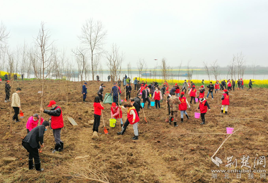 長(zhǎng)江干堤浠水蘭溪長(zhǎng)江村段植樹(shù)活動(dòng)現(xiàn)場(chǎng)。通訊員供圖