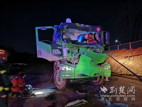 3月14日晚,黃石開發(fā)區(qū)·鐵山區(qū)連發(fā)兩起渣土車事故,消防部門展開緊急救援。(記者 呂鑒蕾 制作)