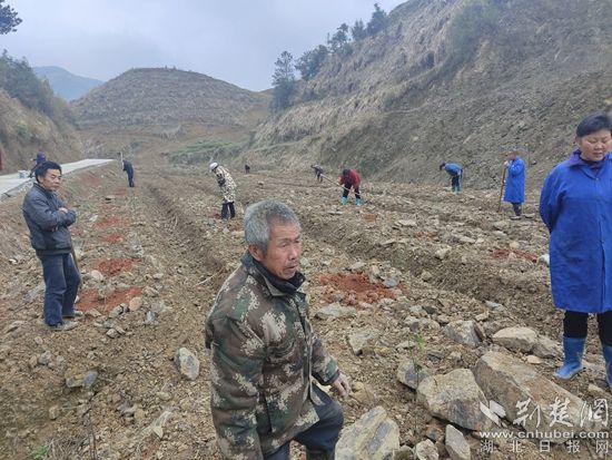 壢上村在接到鎮(zhèn)政府“向荒山進(jìn)軍”的通知后,村“兩委”早早謀劃,在轄區(qū)立南山動(dòng)用挖機(jī)已開荒150畝,這些天,村民們正忙著栽種樹苗。