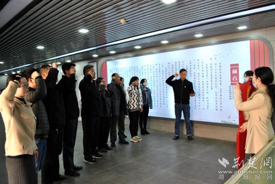 龍感湖史館內(nèi),參觀人員宣誓。通訊員供圖