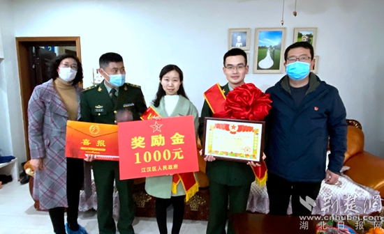 在武漢市江岸區(qū),該支隊(duì)某中隊(duì)指導(dǎo)員馬鳴梟的妻子官杏拿著立功喜報(bào),撫摸著閃耀的軍功章,說道:“丈夫在部隊(duì)立功受獎(jiǎng),不僅是他個(gè)人的榮譽(yù),也是我們軍屬的榮光。部隊(duì)登門送喜報(bào),讓軍屬分享到這份榮耀,更有助于提升軍人、軍屬的榮譽(yù)感和社會(huì)地位?!?/p>