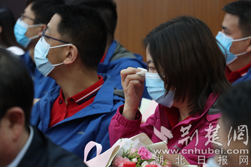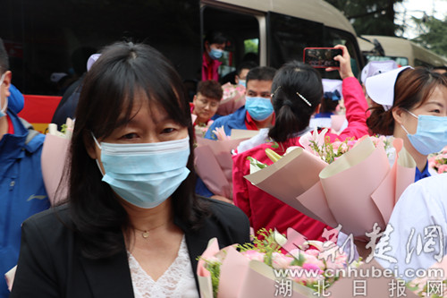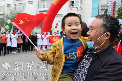 跟王宏興一樣,當天在鄂州市中心醫(yī)院有上千人列隊,歡迎親人回家。一些住院的患者聞訊,雖不能下樓迎接,也各自在住院樓樓上揮舞著手中的紅旗吶喊著,迎接“白甲”英雄。