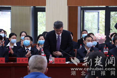 劉黎明嘶啞著嗓子說道,從2月11日星夜前來,到3月26日凱旋,在歷時45天的時間里,貴州援鄂醫(yī)療隊逆行于危難之際、挺身于眾人之前、奮戰(zhàn)在抗疫一線,用血肉之軀構(gòu)筑起守護鄂州百姓生命健康的“鋼鐵長城”。