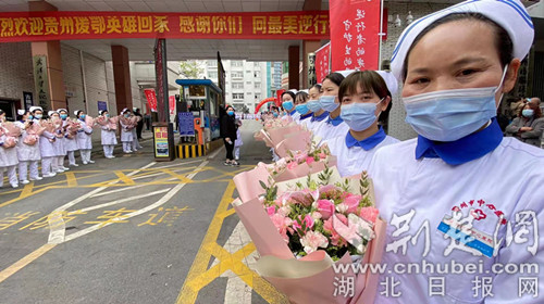 3月25日、3月26日,貴州援助鄂州醫(yī)療隊代表們所到之處,沿途都是群眾的紅旗、鮮花和吶喊聲。有的群眾站在路邊注目,有的主動停車禮讓,人們懷著最樸素的感情歡迎親人“回家”。