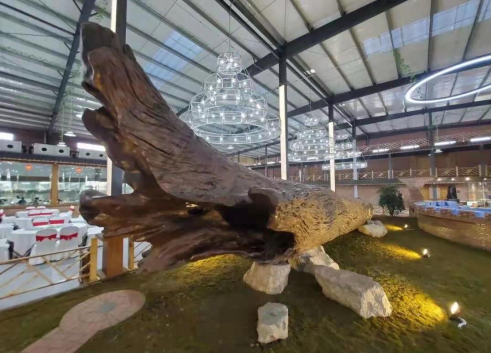 轉(zhuǎn)機(jī)出現(xiàn)在2017年11月,木垸村民挖池塘?xí)r,發(fā)現(xiàn)了一顆樹(shù)齡超過(guò)2000年、專家鑒定沉睡地底3000年的稀有金絲楠陰沉木。這棵根部直徑約3.3米,樹(shù)干最粗胸圍約5.5米,殘長(zhǎng)16米,價(jià)值連城的金絲楠被尊稱為“神木”,后建起“東方神木館”。