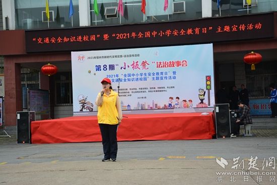 鄂州市“小板凳”法治故事會第八期“交通安全知識進(jìn)校園”活動現(xiàn)場。(通訊員供圖)
