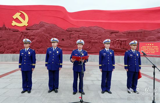 黨員廣場(chǎng)上,黃岡市消防救援支隊(duì)的指戰(zhàn)員們正在開(kāi)展“緬懷革命先烈,回望初心使命”黨史學(xué)習(xí)主題實(shí)踐活動(dòng),他們高聲奏唱國(guó)歌,齊聲重溫入黨誓詞,在紅色勝地的歷史現(xiàn)場(chǎng),每句歌詞和誓詞中每個(gè)字都被賦予了深沉的情感召喚,似有千鈞之重。