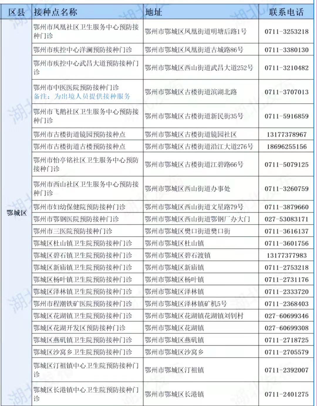 附:鄂城區(qū)免費新冠疫苗接種地址及聯(lián)系方式
