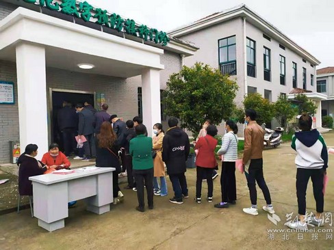 鄂城區(qū)花湖開發(fā)區(qū)接種點位等候的居民。通訊員供圖