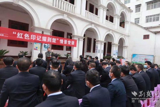 荊楚網(wǎng)(湖北日?qǐng)?bào)網(wǎng))訊(通訊員 孟長(zhǎng)生、燕萍)3月31日,在湖北鄂州市城區(qū)大北門老街的紅色革命遺址——賀龍軍部舊址紀(jì)念館(原北伐軍二十軍軍部舊址),鄂州供電公司老中青三代黨員代表為60余名黨員上了一堂以“紅色印記耀荊楚”為主題的“情景黨課”。