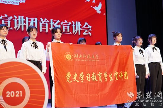 湖北師范大學(xué)黨史學(xué)習(xí)教育學(xué)生宣講團(tuán)首場宣講會召開。記者 劉璐 制作