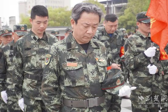 退役軍人代表脫帽緬懷革命英烈。熊子璇 攝