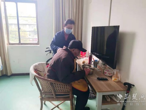 張金娥照顧老人吃飯。記者熊子璇 攝
