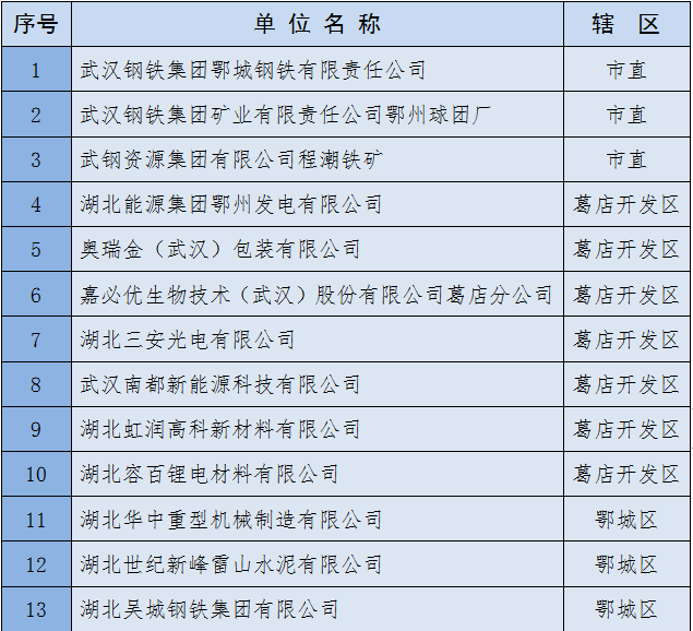 附1:鄂州市重點(diǎn)用能單位名單