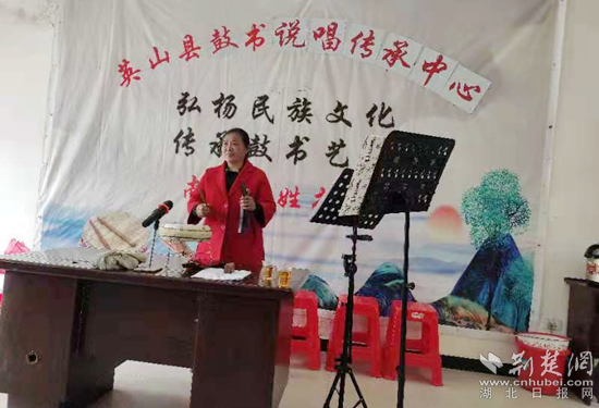 英山縣鼓書說唱傳承中心工作人員表演節(jié)目。通訊員供圖