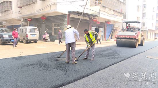 紅安縣職教中心西側(cè)道路刷黑。通訊員供圖