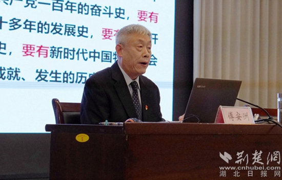 傅安洲作黨史學(xué)習(xí)教育專題輔導(dǎo)。記者阮瓊攝