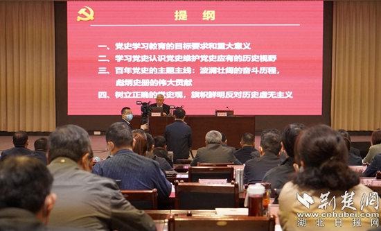 該縣邀請(qǐng)省宣講團(tuán)成員、中國(guó)地質(zhì)大學(xué)(武漢)黨委常委、副校長(zhǎng)傅安洲作黨史學(xué)習(xí)教育專題輔導(dǎo)。傅安洲以《百年黨史:史詩(shī)般的思政大課》為主題,從黨史學(xué)習(xí)教育的目標(biāo)要求和重大意義、學(xué)習(xí)黨史認(rèn)識(shí)黨史維護(hù)黨史應(yīng)有的歷史視野、百年黨史的主題主線、樹立正確的黨史觀等四個(gè)方面進(jìn)行宣講。