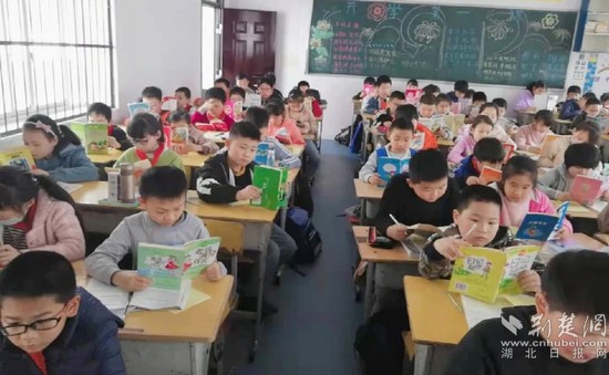 武穴市武穴街道辦事處中心學校黨總支書記、小橋小學校長袁曉英介紹,該校每周都會開展讀書活動,不僅學生讀,老師也參與,想讓書香充溢校園的每一個角落,使學生們養(yǎng)成人人愛讀書的良好閱讀習慣。