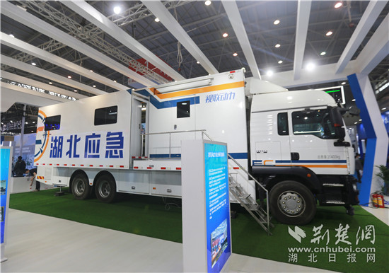 現(xiàn)場展示的移動應(yīng)急指揮車和“行者號”視聯(lián)多功能移動應(yīng)急指揮方艙