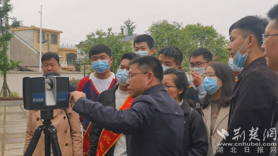 指導(dǎo)學(xué)生對(duì)紅色建筑舊址進(jìn)行三維激光掃描。阮瓊攝