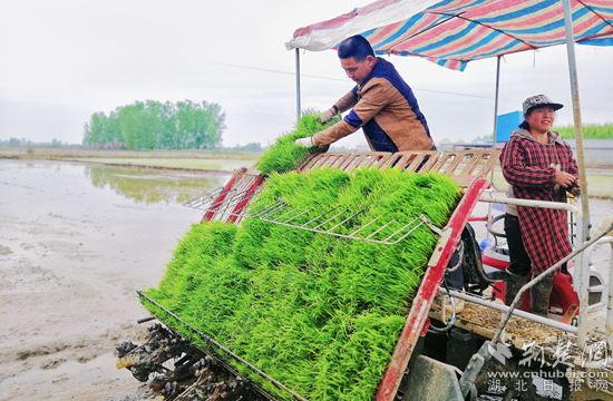 圖為機械種秧現(xiàn)場。通訊員供圖
