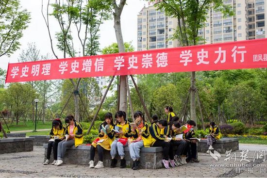 團(tuán)風(fēng)縣學(xué)校師生學(xué)黨史。通訊員供圖