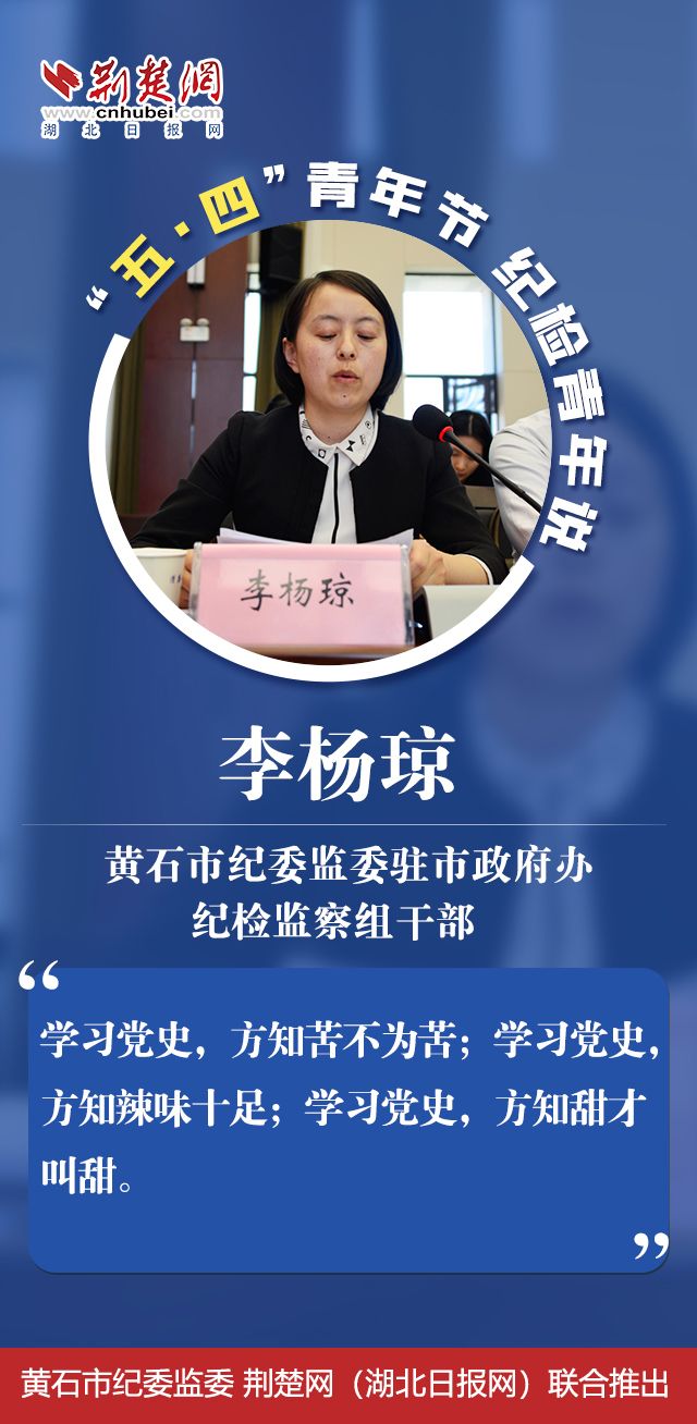 圍繞“學(xué)黨史、悟思想、勇?lián)?dāng)”這一主題,黃石市紀(jì)委監(jiān)委10名青年干部代表結(jié)合自身的思想、學(xué)習(xí)和工作情況作了交流發(fā)言。他們既談理想,也談?chuàng)?dāng);既立足當(dāng)下,又展望未來(lái)。具體都有哪些亮點(diǎn)?且聽(tīng)“紀(jì)檢青年說(shuō)”。