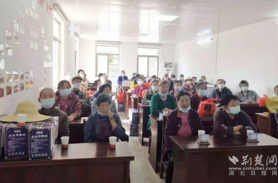 組織現(xiàn)場調(diào)解處理會,退還42名村民購買“五蛇黃精酒”的錢款。通訊員 供圖