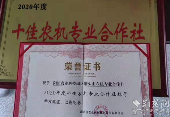精心服務(wù)農(nóng)業(yè),4月份,合作社從湖北省農(nóng)業(yè)機械化科技創(chuàng)新聯(lián)合會捧回了湖北省“十佳農(nóng)機專業(yè)合作社”的獎牌和榮譽證書。
