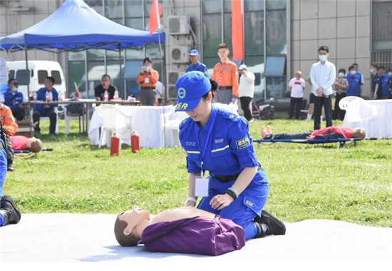 當(dāng)天,江岸區(qū)消防救援大隊進行了無人機應(yīng)急救援技能展示,武漢藍天救援隊展示了心肺復(fù)蘇急救手法。