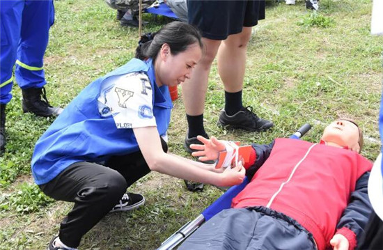 藍天救援隊員展示心肺復(fù)蘇技術(shù)