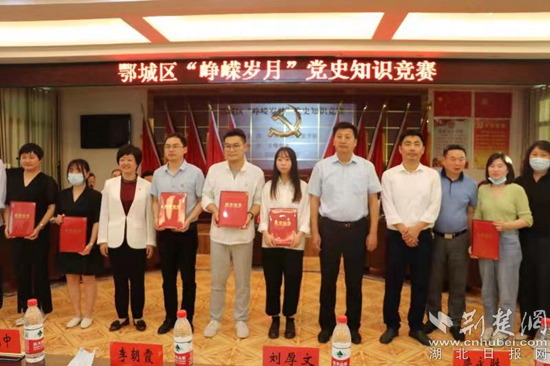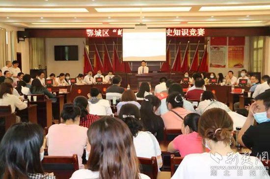 鄂城區(qū)“崢嶸歲月”黨史知識(shí)競(jìng)賽現(xiàn)場(chǎng)。通訊員 供圖