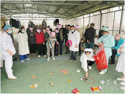 醫(yī)護(hù)人員帶領(lǐng)患者做趣味游戲。通訊員供圖