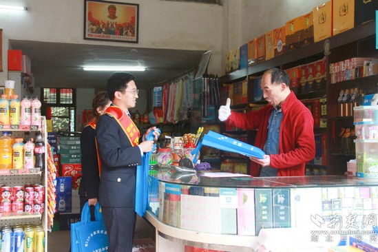 鄂城區(qū)稅務(wù)局青年志愿服務(wù)隊進店鋪開展稅法宣傳,得到納稅人好評。通訊員供圖