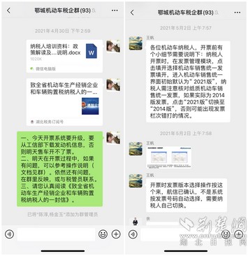機動車企業(yè)稅務(wù)微信聯(lián)絡(luò)群聊天截圖。通訊員供圖