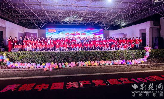 黃岡師范學(xué)院師生共慶中國共產(chǎn)黨成立100周年活動(dòng)現(xiàn)場。通訊員供圖