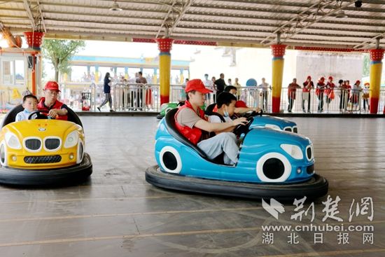 在志愿者的陪伴下,小朋友們快樂地玩起了碰碰車。通訊員 供圖