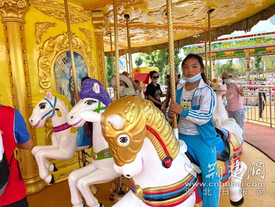 小朋友們體驗旋轉(zhuǎn)木馬項目。通訊員 供圖
